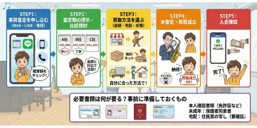 楽器買取の流れ 申し込みから入金までの5ステップ