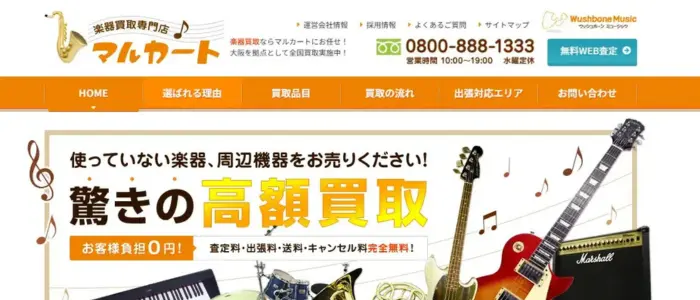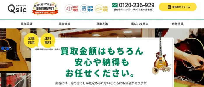 長年の実績に裏打ちされた査定力の高さが最大の強み。特にギター・ベース系の楽器に関しては、ヴィンテージ品からモダンな機種まで幅広く対応しています。「名前を知っている安心感のある大手で売りたい」という方にぴったりです。